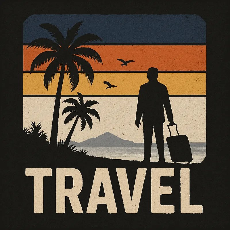 Themes include national landmarks, cultural icons, retro travel badges, maps, and hand-drawn vibes